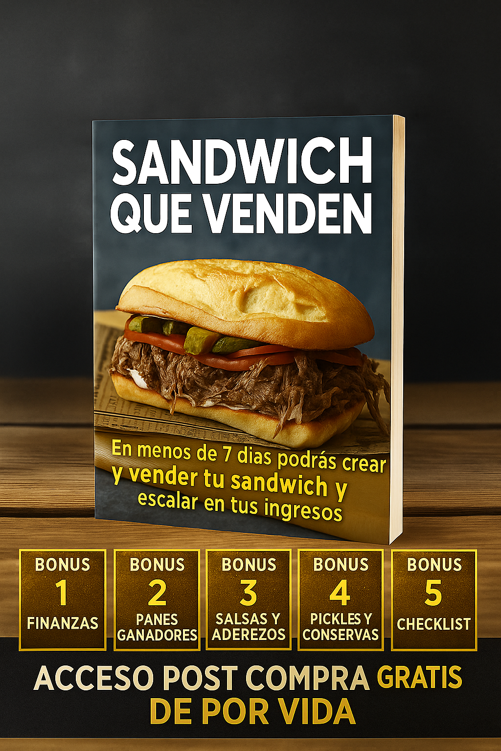 - ✔ Recetario completo con 20 sándwiches profesionales listos para vender